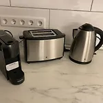 Gasten kunnen een complete keuken gebruiken in dit appartement.
